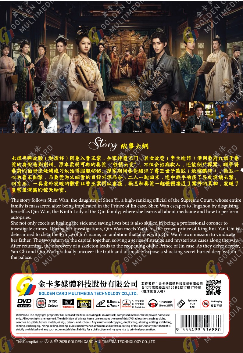 She not only excels at healing the sick and saving lives but is also skilled in being a professional coroner to investigate crimes. During her investigations, Qin Wan meets Yan Chi, the crown prince of King Rui. Yan Chi is determined to clear the Prince of Jin’s name, an ambition that aligns with Qin Wan’s own mission to vindicate her father. The two return to the capital together, solving a series of strange and mysterious cases along the way. After returning, the discovery of a skeleton leads to the reopening of the Prince of Jin case. As they delve deeper, Yan Chi and Qin Wan gradually uncover the truth and ultimately expose a shocking secret buried deep within the palace.”