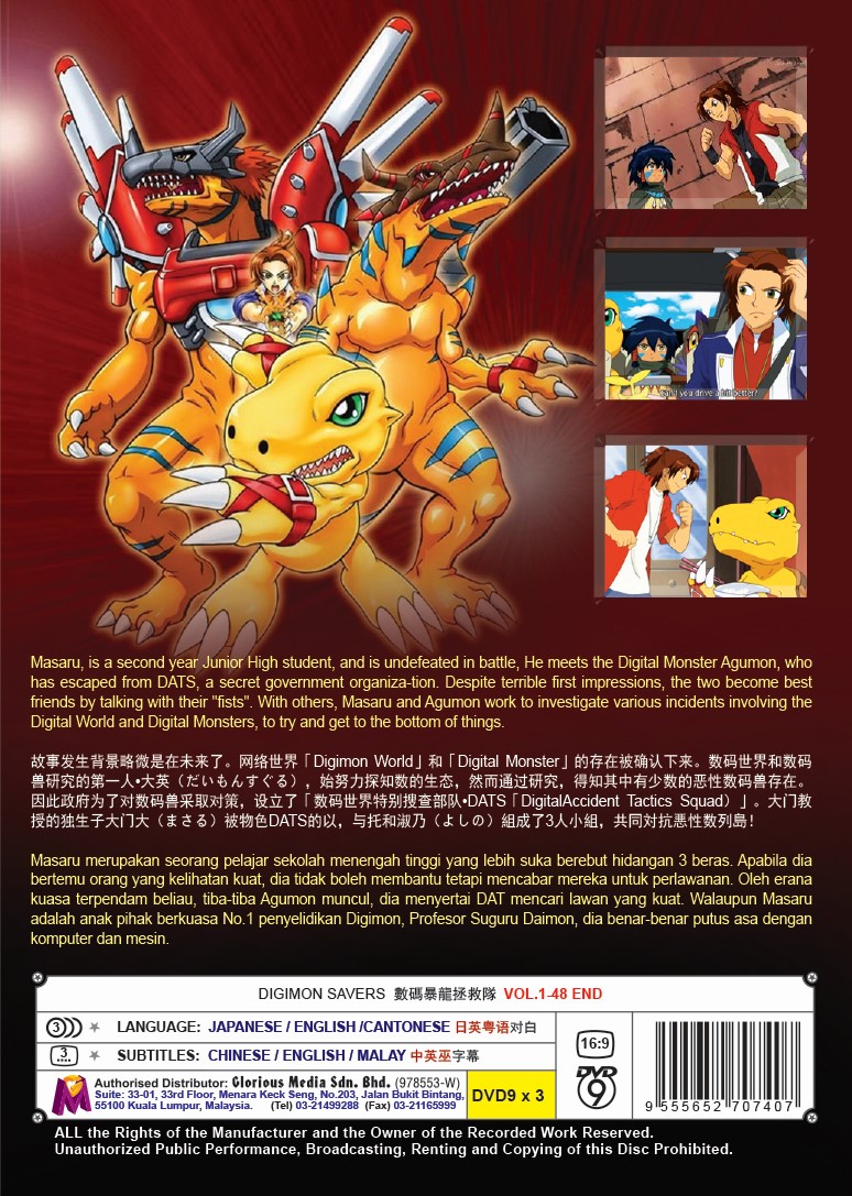 Masaru, is a second year Junior High student, and is undefeated in battle, He meets the Digital Monster Agumon, who has escaped from DATS, a secret government organization. Despite terrible first impressions, the two become best friends by talking with their “fists”. With others, Masaru and Agumon work to investigate various incidents involving the Digital World and Digital Monsters, to try and get to the bottom of things.
