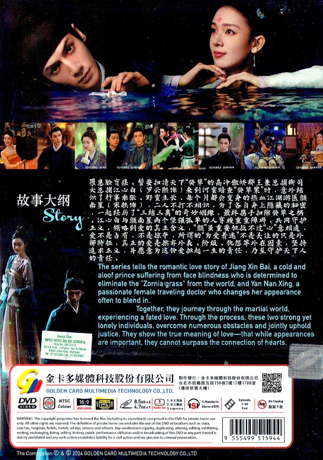“The series tells the romantic love story of Jiang Xin Bai, a cold and aloof prince suffering from face blindness who is determined to eliminate the “”Zornia grass”” from the world, and Yan Nan Xing, a passionate female traveling doctor whose appearance changes often due to a curse during the full moon each month.