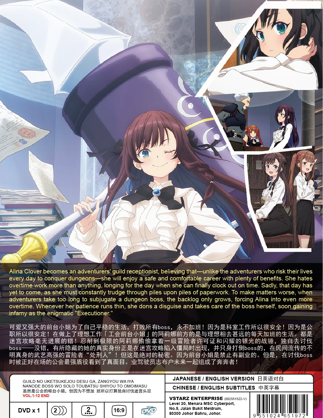 “Alina Clover becomes an adventurers’ guild receptionist, believing that—unlike the adventurers who risk their lives every day to conquer dungeons—she will enjoy a safe and comfortable career with plenty of benefits. She hates overtime work more than anything, longing for the day when she can finally clock out on time. Sadly, that day has yet to come, as she must constantly trudge through piles upon piles of paperwork.