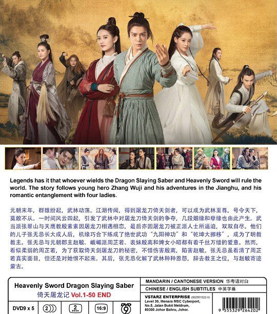 Legends has it that whoever wields the Dragon Slaying Saber and Heavenly Sword will rule the world. The story follows young hero Zhang Wuji and his adventures in the Jianghu, and his romantic entanglement with four ladies.