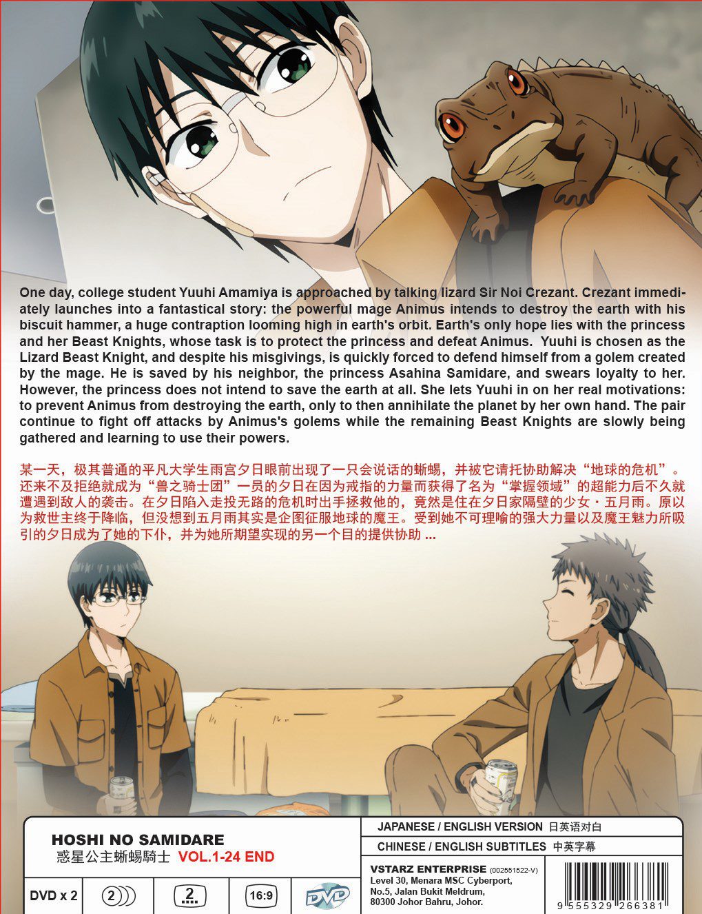 “College student Yuuhi Amamiya’s monotonous life is turned upside down with the appearance of Sir Noi Crezant, a talking lizard claiming to be a knight of justice. Crezant elaborates that the world is in peril—threatened by the mage Animus who wishes to annihilate it with his Biscuit Hammer, an enormous structure suspended in Earth’s orbit. As the newly appointed Lizard Knight, Yuuhi must fight alongside other Beast Knights to protect the princess and save the planet from destruction.