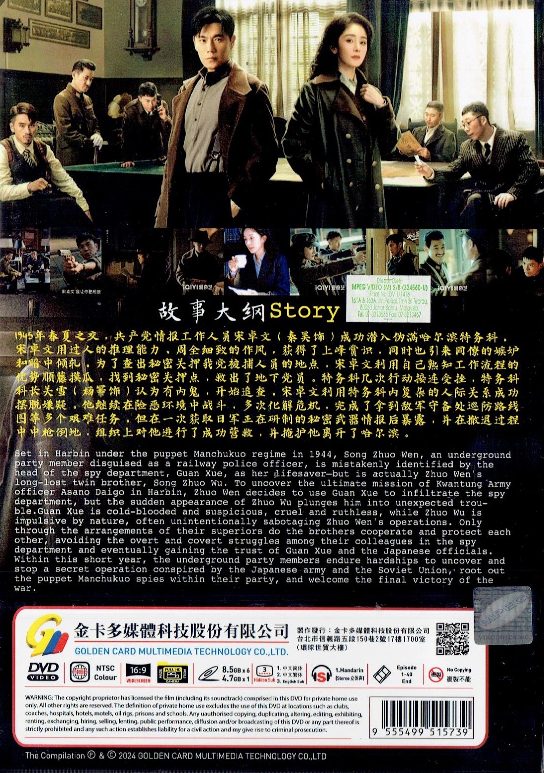 “Set in Harbin under the puppet Manchukuo regime in 1944, Song Zhuo Wen, an underground party member disguised as a railway police officer, is mistakenly identified by the head of the spy department, Guan Xue, as her lifesaver—but is actually Zhuo Wen’s long-lost twin brother, Song Zhuo Wu. To uncover the ultimate mission of Kwantung Army officer Asano Daigo in Harbin, Zhuo Wen decides to use Guan Xue to infiltrate the spy department, but the sudden appearance of Zhuo Wu plunges him into unexpected trouble.