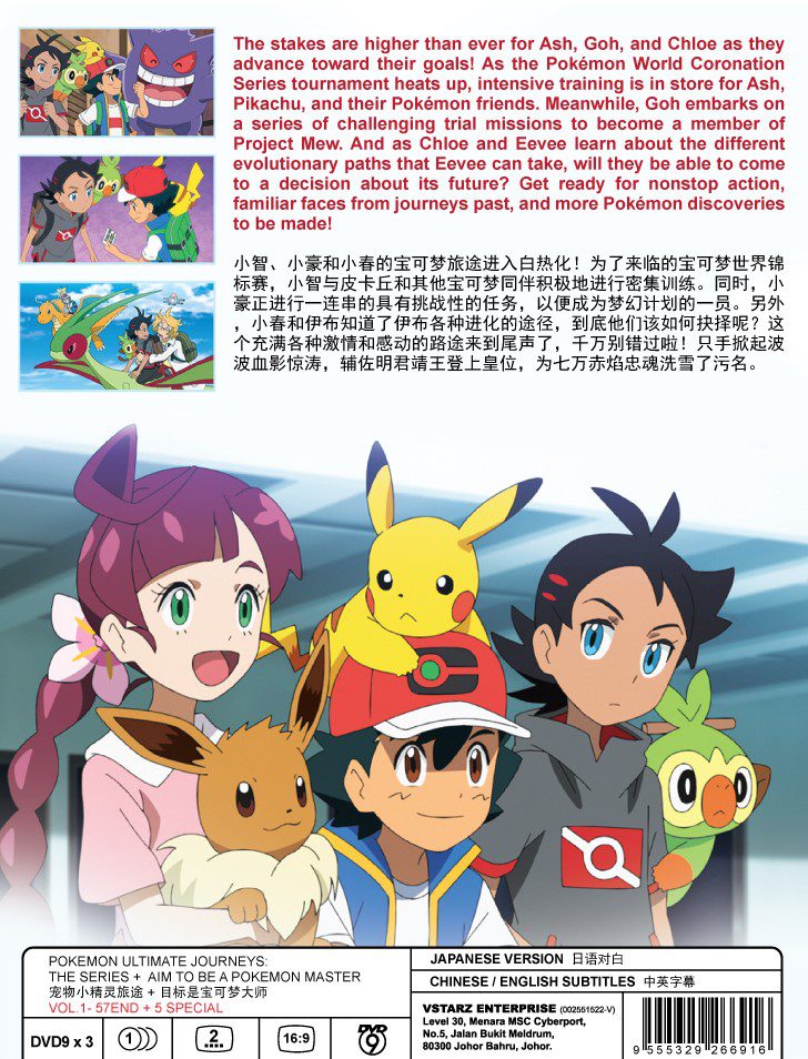 The stakes are higher than ever for Ash, Goh, and Chloe as they advance toward their goals! As the Pokémon World Coronation Series tournament heats up, intensive training is in store for Ash, Pikachu, and their Pokémon friends. Meanwhile, Goh embarks on a series of challenging trial missions to become a member of Project Mew. And as Chloe and Eevee learn about the different evolutionary paths that Eevee can take, will they be able to come to a decision about its future? Get ready for nonstop action, familiar faces from journeys past, and more Pokémon discoveries to be made!
