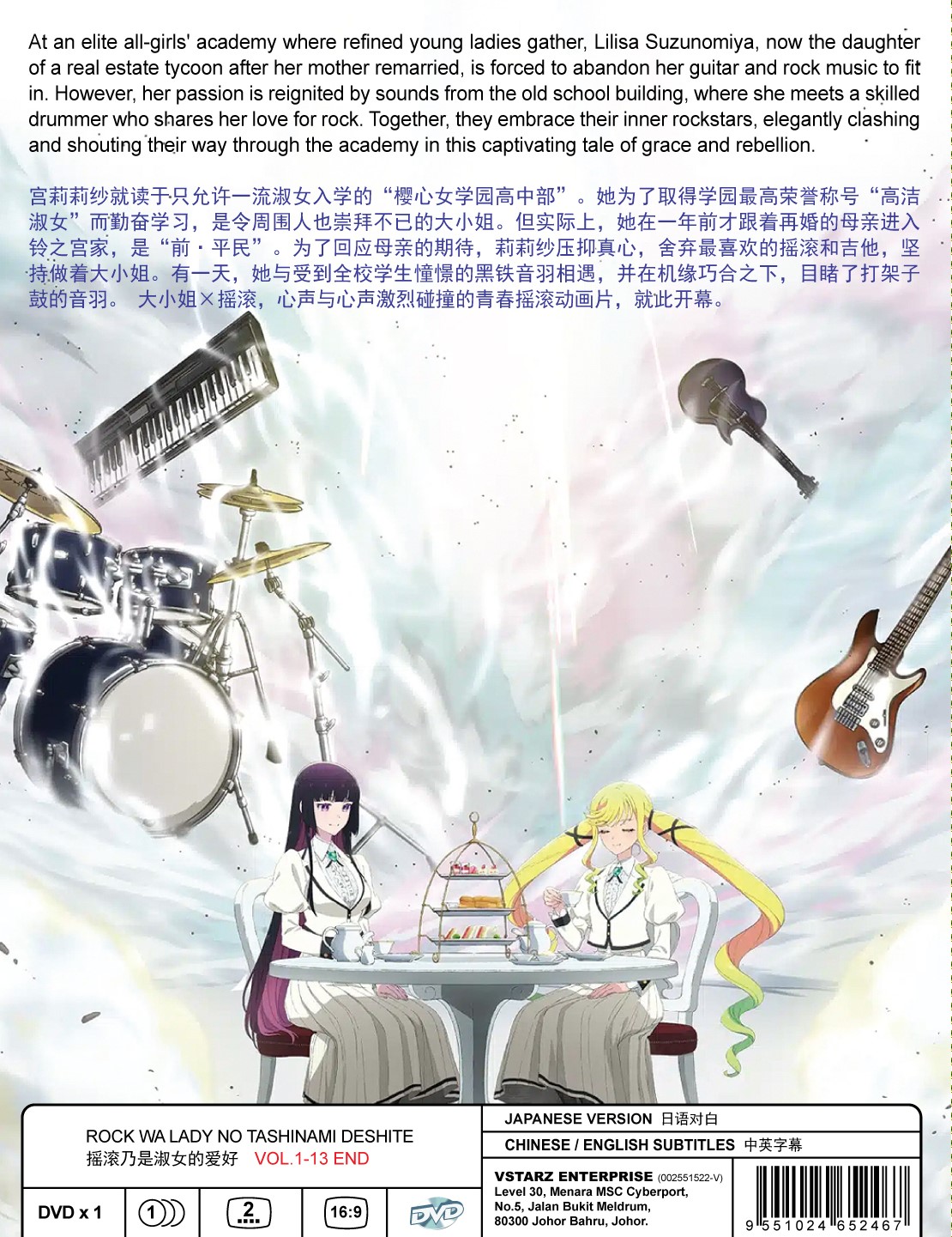 The most difficult challenge Lilisa has faced in pursuit of this goal is abandoning her love of rock music to keep up the rich girl facade she must now wear. But her resolve crumbles once she happens upon Otoha Kurogane, the daughter of a prominent politician, skillfully playing the drums while rocking out in an abandoned school building. Despite initially being at odds, they embrace their passion for music together while leading a double life.”