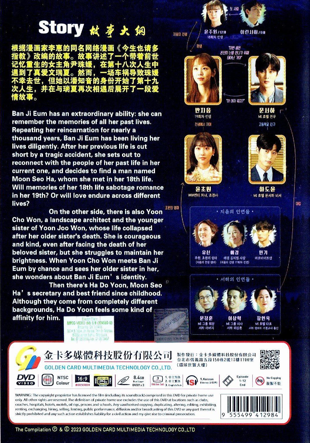 “Ban Ji Eum has an extraordinary ability: she can remember the memories of all her past lives. Repeating her reincarnation for nearly a thousand years, Ban Ji Eum has been living all her lives diligently. After her previous life is cut short by a tragic accident, she sets out to reconnect with the people of her past life in her current one, and decides to find a man named Moon Seo Ha, whom she met in her 18th life. Will memories of her 18th life sabotage romance in her 19th? Or will love endure across different lives?