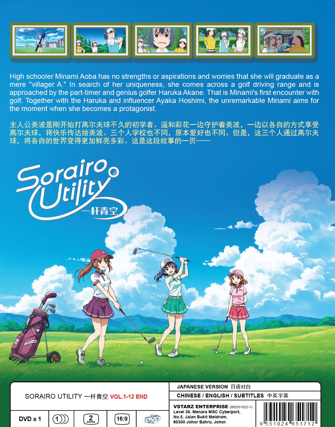 One fateful afternoon, Minami stumbles upon a golf driving range after helping an old man carry his equipment there. Inside, she meets Haruka Akane, who promptly introduces her to the sport. Much like her previous attempts at athletics, Minami has no natural talent for golf, but something about the rhythm of swinging the club captivates her. Finally, Minami feels the spark of genuine excitement that she has been looking for—a new obsession within her reach.”