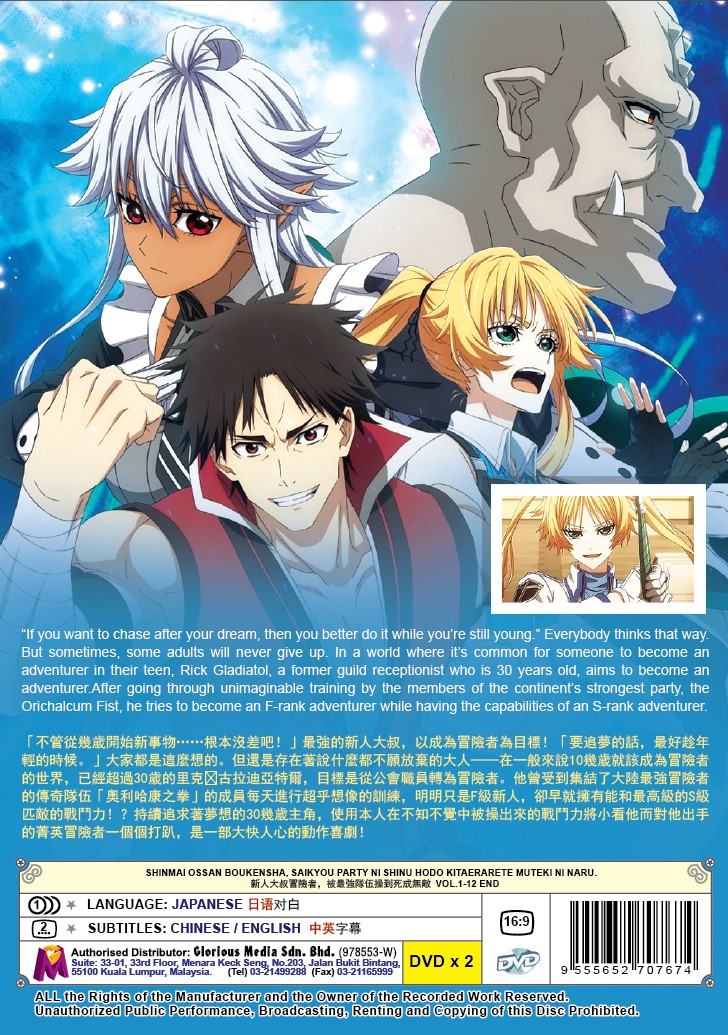 “Determined to pursue his glorious childhood dreams, 30-year-old Rick Gladiatol, a modest clerk in the adventurers’ guild, is offered a once-in-a-lifetime opportunity after he fatefully encounters the dark elf Reanette Elfelt. Reanette happens to be an elite adventurer of the legendary party Orichalcum Fist, whose members welcome Rick under the condition that he follow a Spartan training.