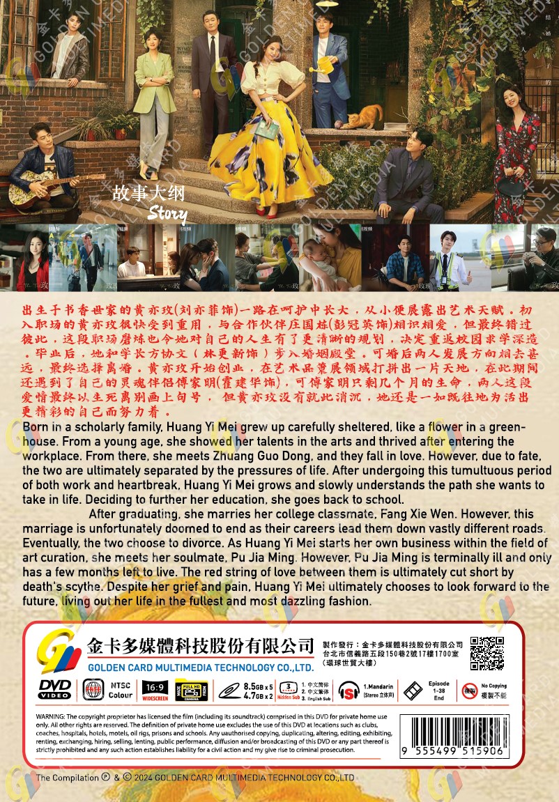 After graduating, she marries her college classmate, Fang Xie Wen. However, this marriage is unfortunately doomed to end as their careers lead them down vastly different roads. Eventually, the two choose to divorce. As Huang Yi Mei starts her own business within the field of art curation, she meets her soulmate, Pu Jia Ming. However, Pu Jia Ming is terminally ill and only has a few months left to live. The red string of love between them is ultimately cut short by death’s scythe. Despite her grief and pain, Huang Yi Mei ultimately chooses to look forward to the future, living out her life in the fullest and most dazzling fashion.”