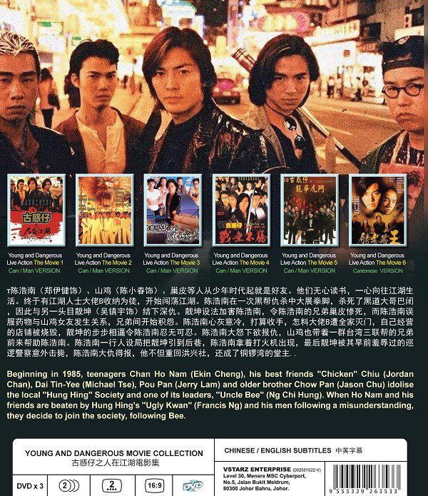 Young and Dangerous tells the story of Chan Ho Nam, “Chicken” Chiu , Tai Tin Yee , Pao Pan and his brother Chow Pan during their inclusion into the “Hung Hing” Society. The focus is on internal squabbling within the triad, spearheaded by “Ugly Kwan”. Based on a popular comic book series named “Teddy Boy”, the film contributed a lot to the public image of triads and was condemned by certain quarters as glorifying secret triad societies. However, it was immensely popular in Hong Kong and spun a long list of sequels and spin-offs.